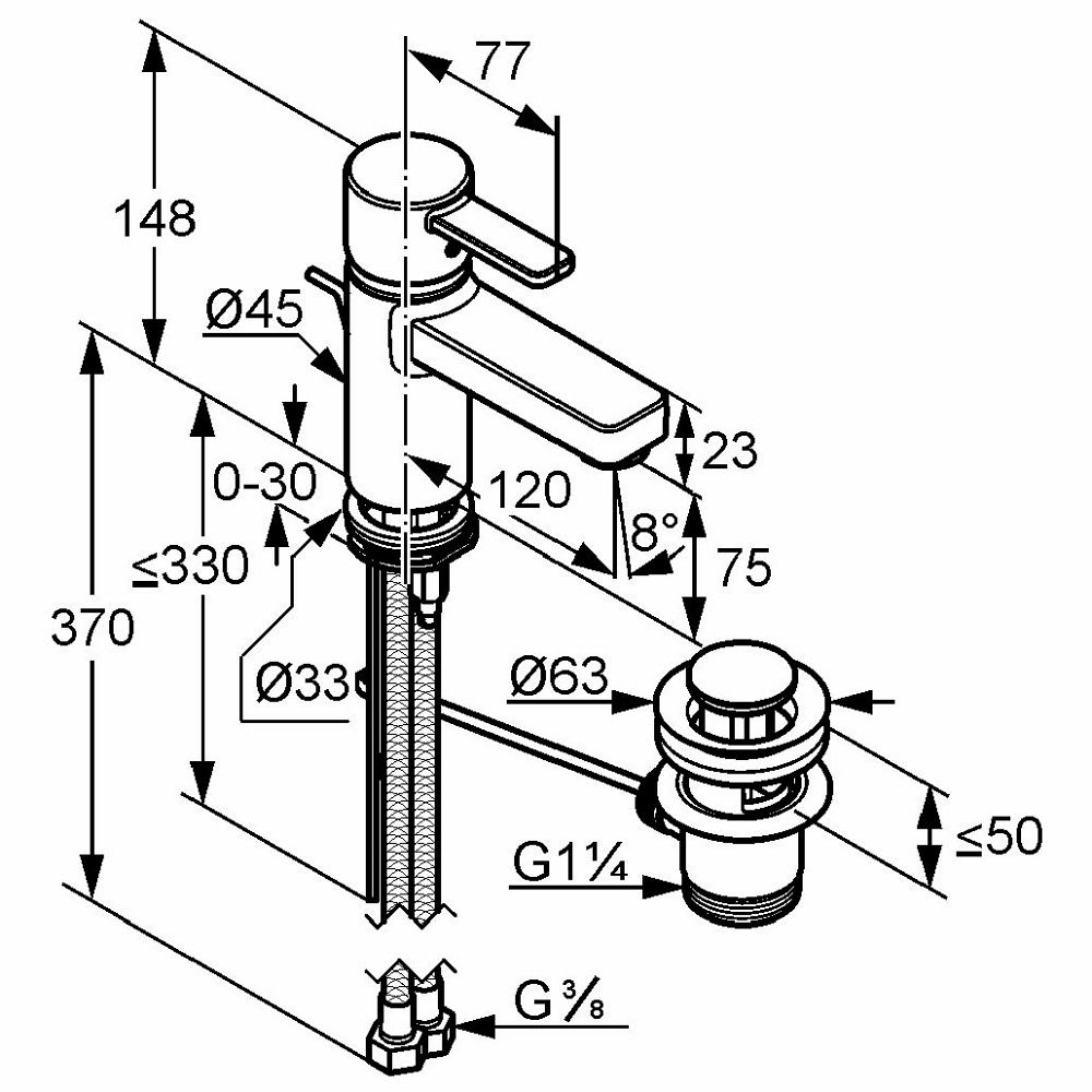 - flexible Anschlüsse 3/8"