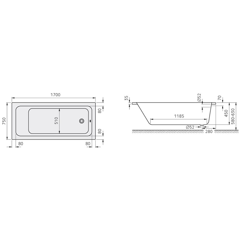 Koralle T200 Badewanne 170 x 75 x 45 cm