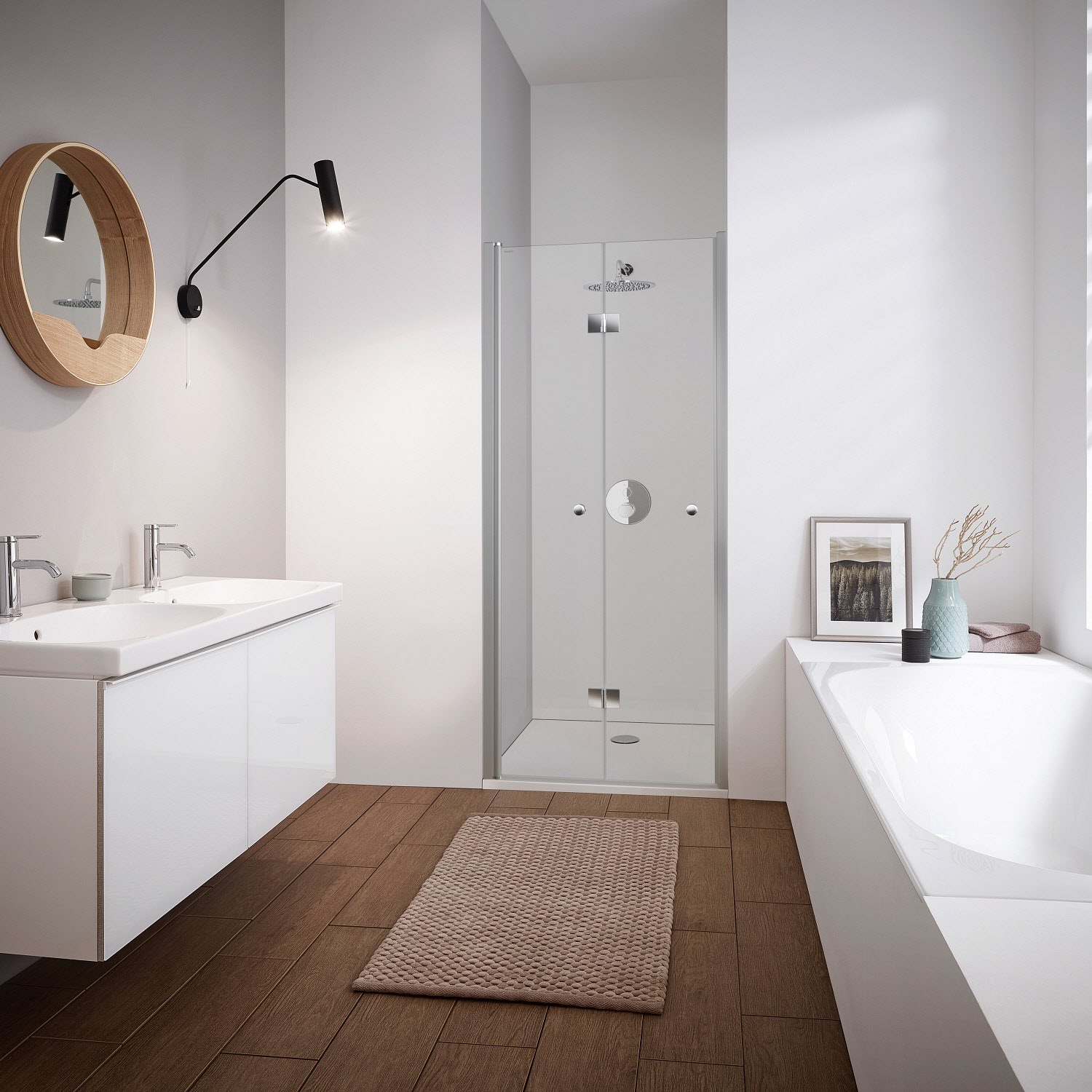 - Schenkellänge der eingebauten Wanne für Nische oder verkürzte Trennwand: 97 - 101 cm