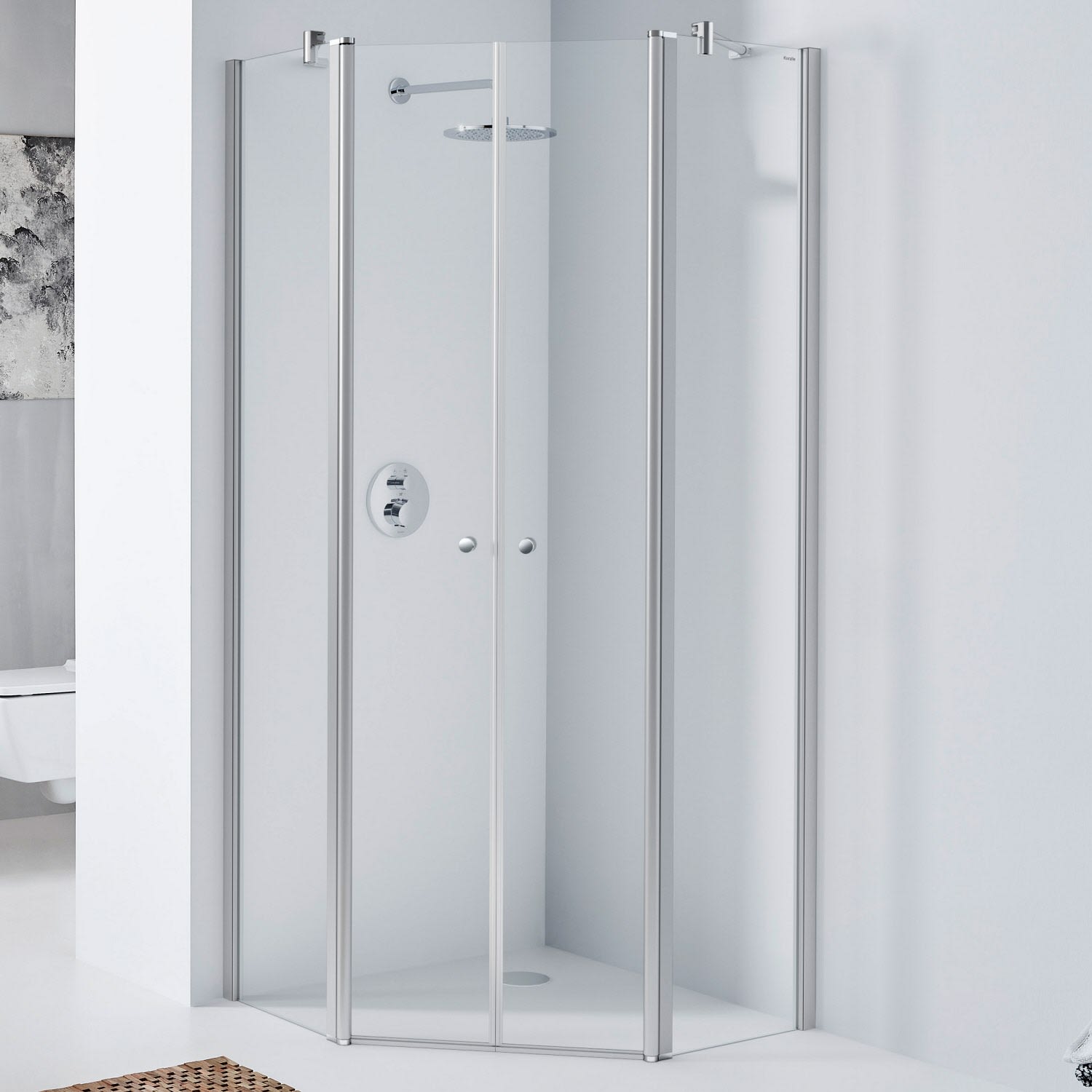 Koralle TwiggyPlus Fünfeckdusche Pendeltür mit Festelement 100 x 185 cm