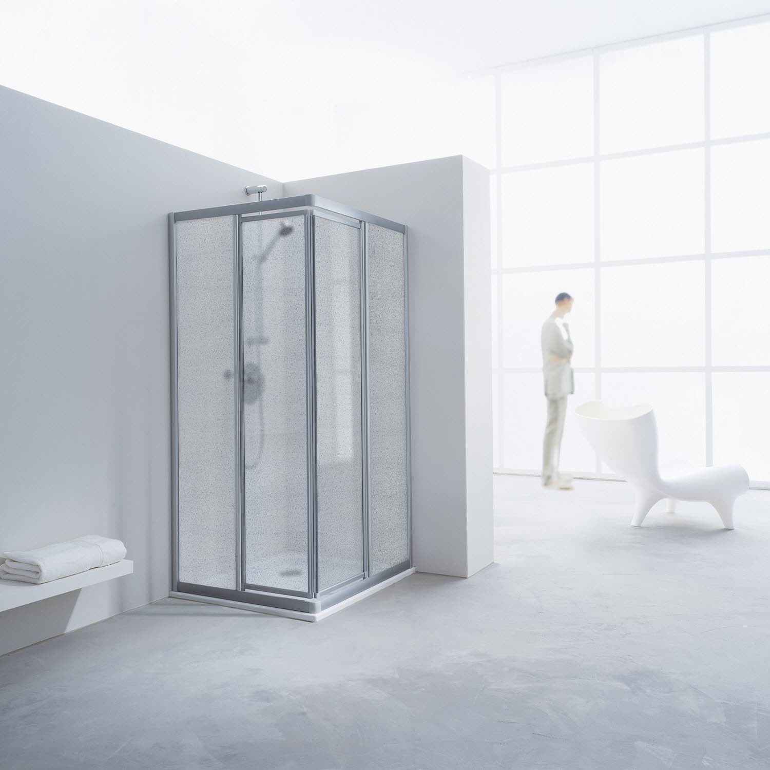 - komplette Duschabtrennung mit 2 Pendeltüren und 2 Festteilen