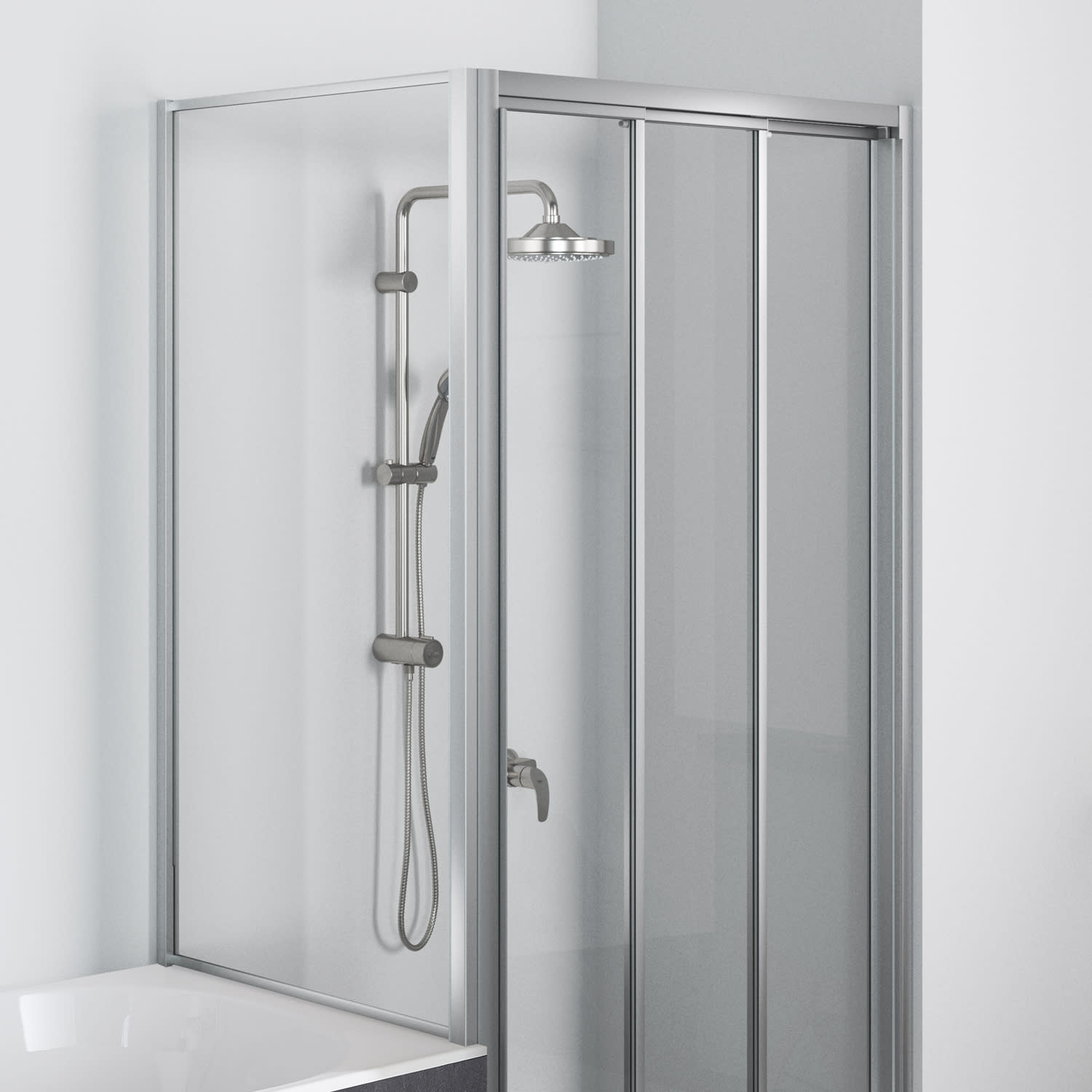 - für Einbau beispielsweise auf Badewanne, die in Flucht mit einer Duschwanne steht