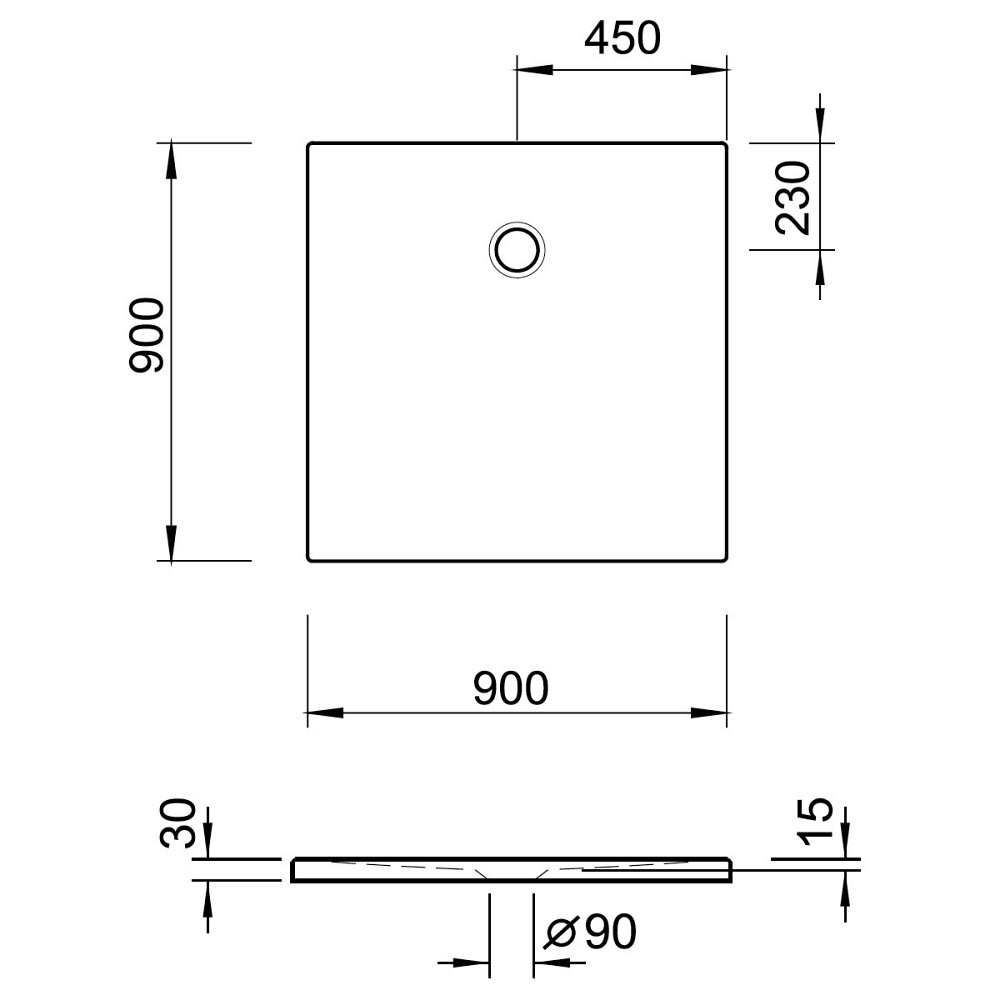 Koralle T400 Mineralguss-Duschwanne 90 x 90 cm
