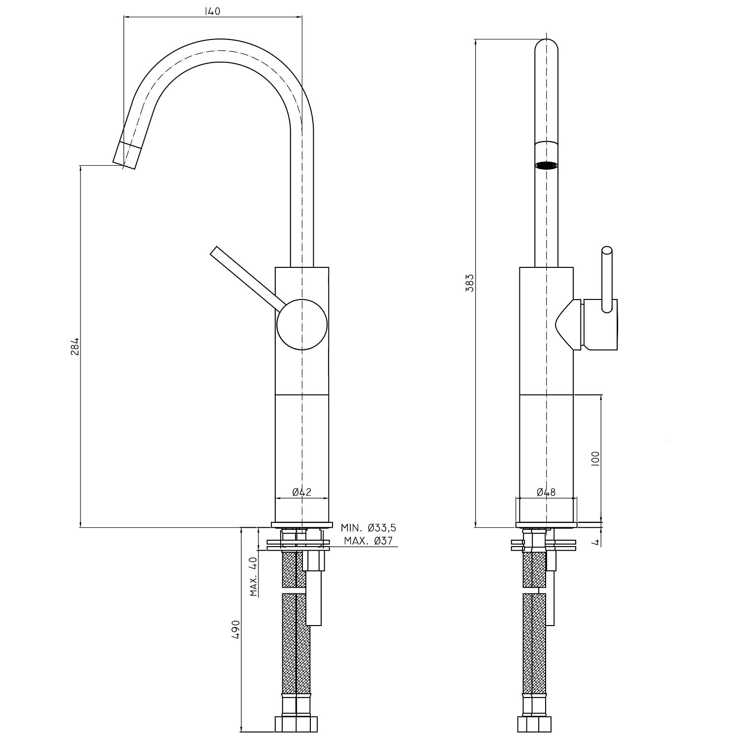 - Höhe bis Auslauf 28,4 cm