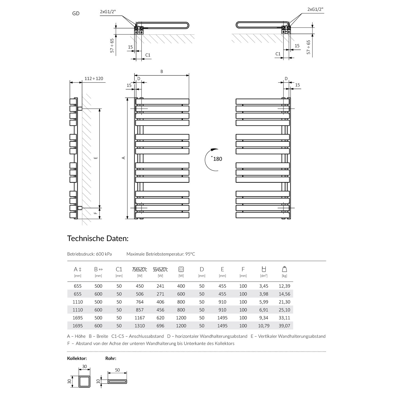 - max. Betriebstemperatur bis 95°C