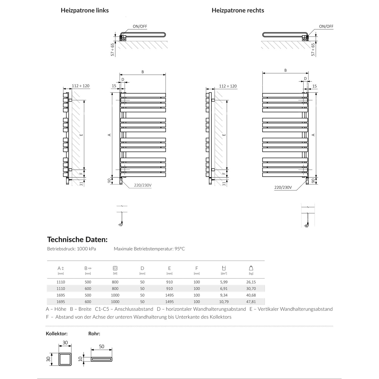 - Heizpatrone mit Frostschutzfunktion und Überhizungsschutz