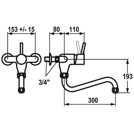 - Wandanschlüsse ¾" x ¾", nicht absperrbar L 40 exzentrisch 7.5 mm