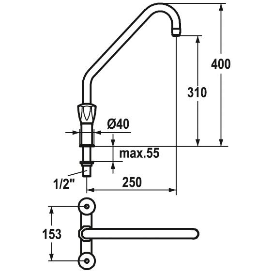 KWC Gastro Zweigriff-Spültisch-Brückenbatterie für die Profiküche, Höhe 39,2 cm