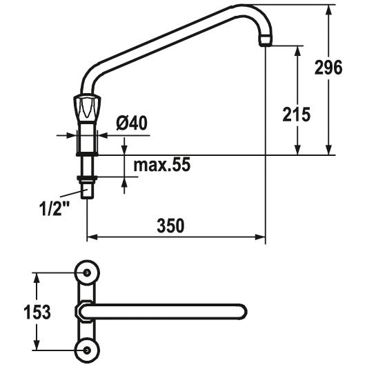 KWC Gastro Zweigriff-Spültisch-Brückenbatterie für die Profiküche, Höhe 29,7 cm
