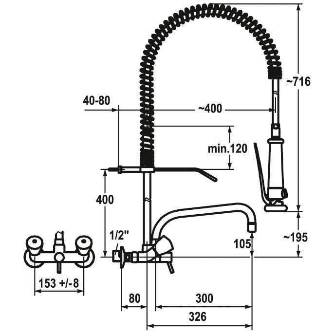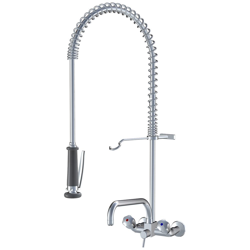 KWC Gastro Zweigriff-Spültisch-Wandbatterie mit Geschirrwaschbrause und Schwenkauslauf für die Profiküche