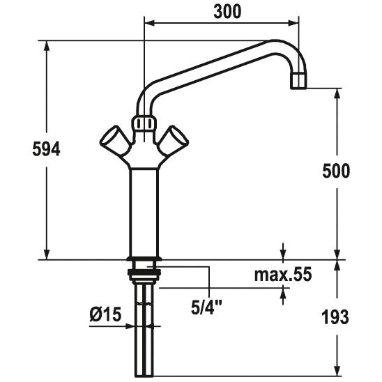 KWC Gastro Zweigriff-Spültischbatterie mit hohem Sockel für die Profiküche, Ausladung 30 cm