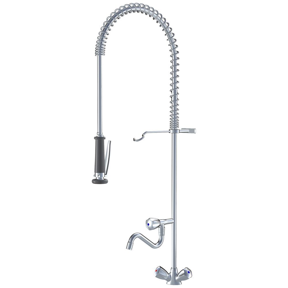 KWC Gastro Zweigriff-Spültischbatterie mit Geschirrwaschbrause und Schwenkauslauf für die Profiküche