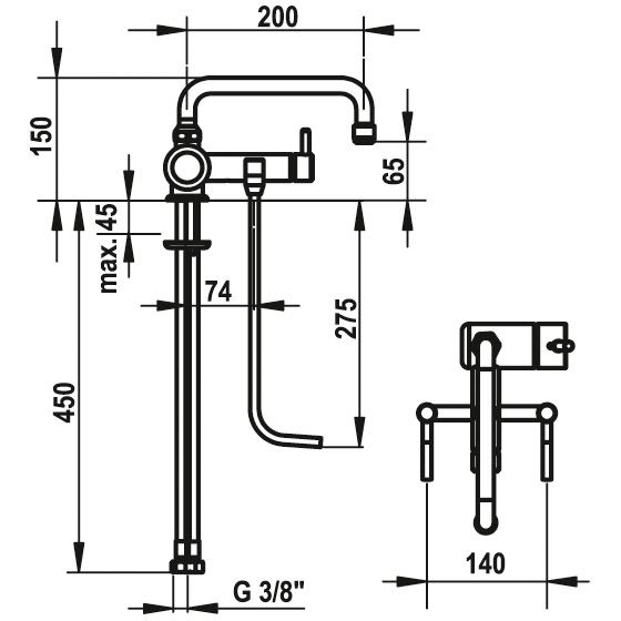 KWC Thekenarmatur Einhebelmischer mit 2 Unterspühlrohren