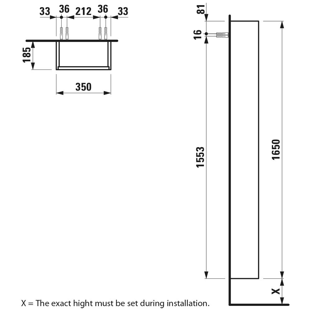 LAUFEN BASE Hochschrank 35 x 18,5 x 165 cm, Scharnier rechts mit Push & Pull-Funktion