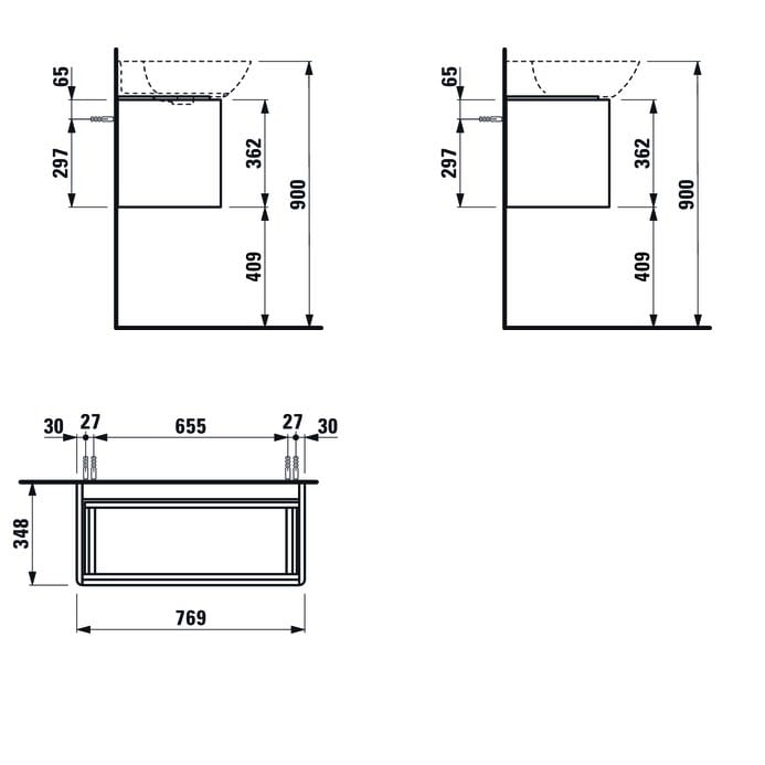 LAUFEN BASE für INO Waschtischunterbau 77 x 35 cm, 1 Schublade, Griff schwarz