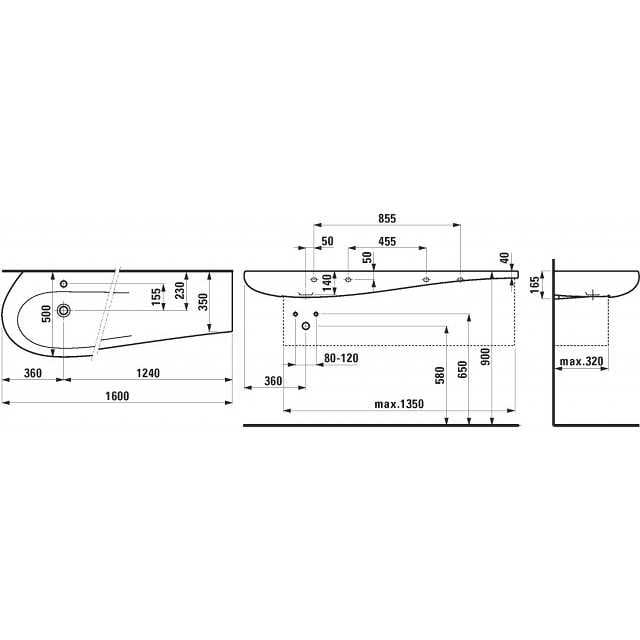 LAUFEN Alessi Waschtisch 160 cm ohne Hahnloch