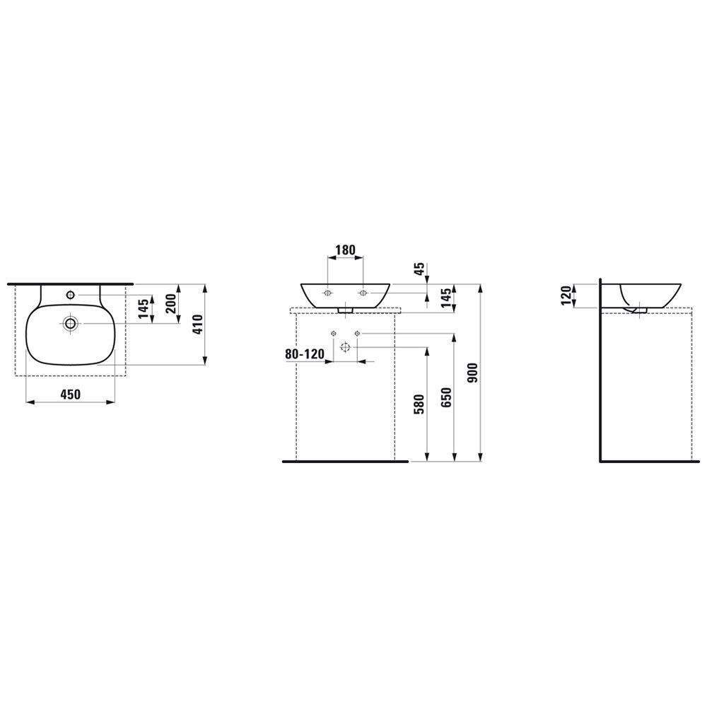 LAUFEN INO Aufsatzhandwaschbecken 45 x 41 cm mit 1 Hahnloch und Überlauf