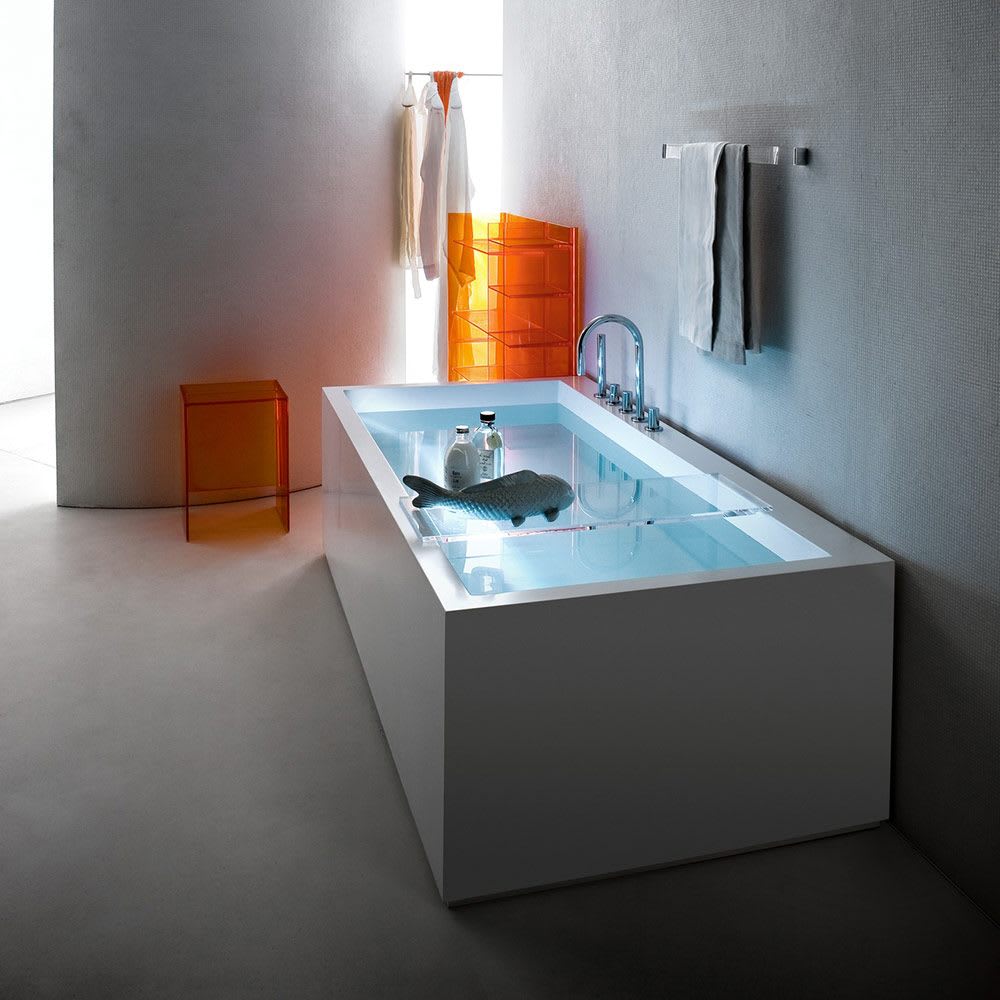 freistehend mit Kopfende rechts, mit LED-Beleuchtung im Überlaufspalt