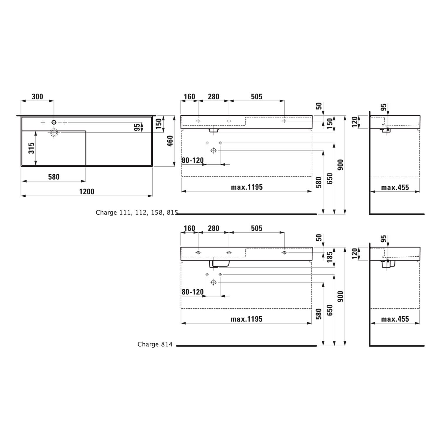 LAUFEN Kartell Waschtisch 120 x 46 cm, mit Ablage rechts, mit 3 Hahnlöchern