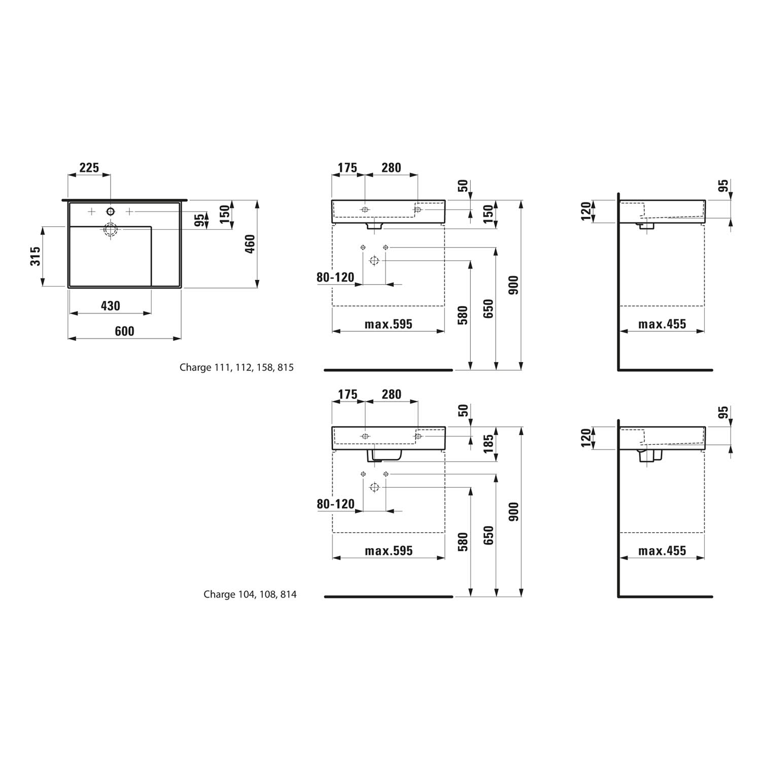LAUFEN Kartell Waschtisch 60 x 46 cm, mit Ablage rechts, mit 1 Hahnloch