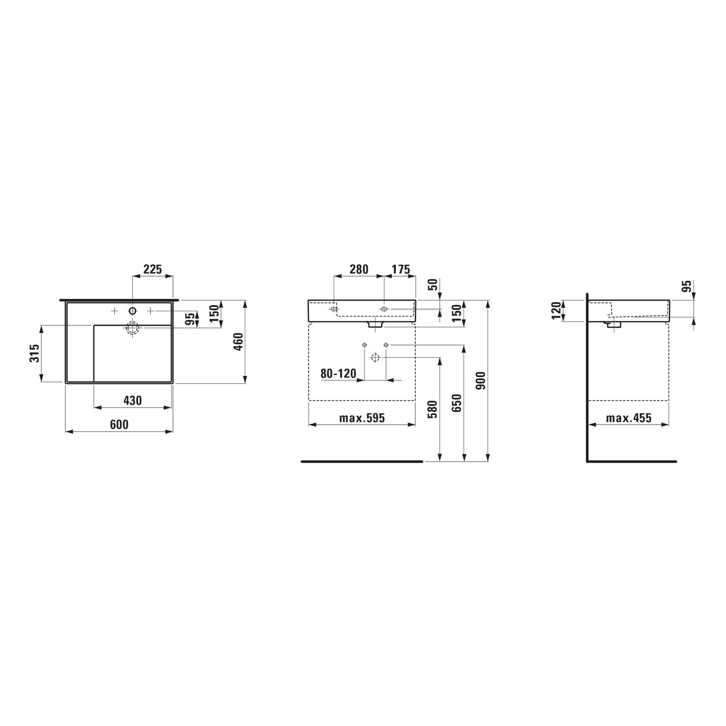 LAUFEN Kartell Waschtisch 60 x 46 cm, mit Ablage links, mit 1 Hahnloch