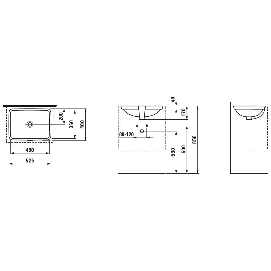 LAUFEN PRO S Einbauwaschtisch von unten 52,5 x 40 cm