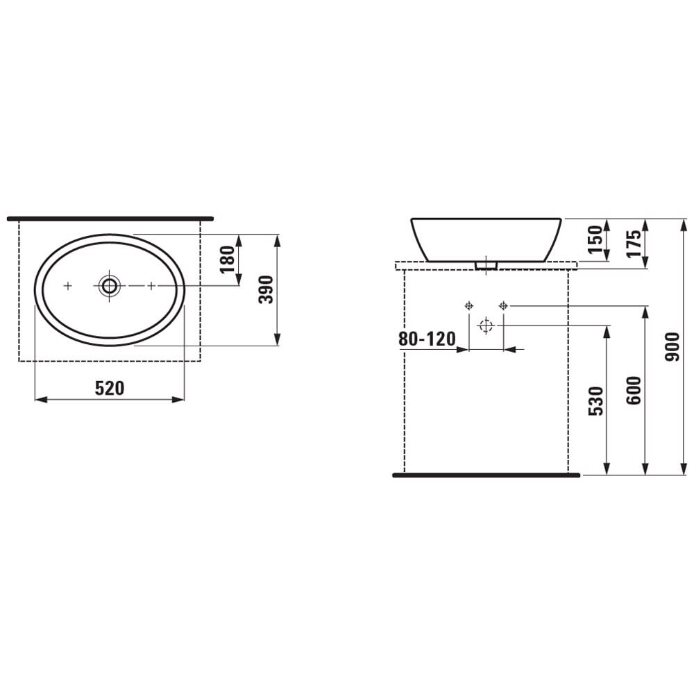LAUFEN PRO B Waschtischschale mit Überlauf, asymmetrisch
