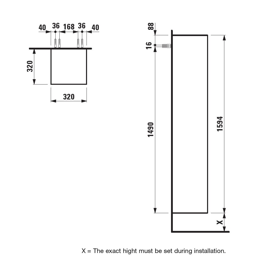 LAUFEN Sonar Hochschrank 33 x 33 x 160 cm mit 1 Tür, Anschlag links