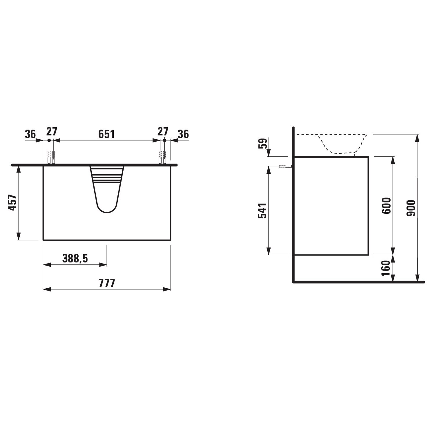 LAUFEN The New Classic Schubladen-Element 78 x 45 x 60 cm für Aufsatz-WT mittig, mit 2 Schubladen