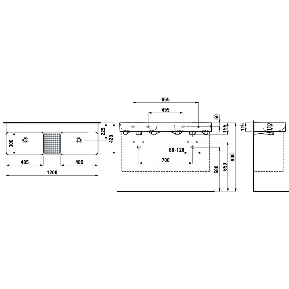LAUFEN Val Doppelwaschtisch unterbaufähig 120 x 40 cm, ohne Hahnloch, mit Überlauf