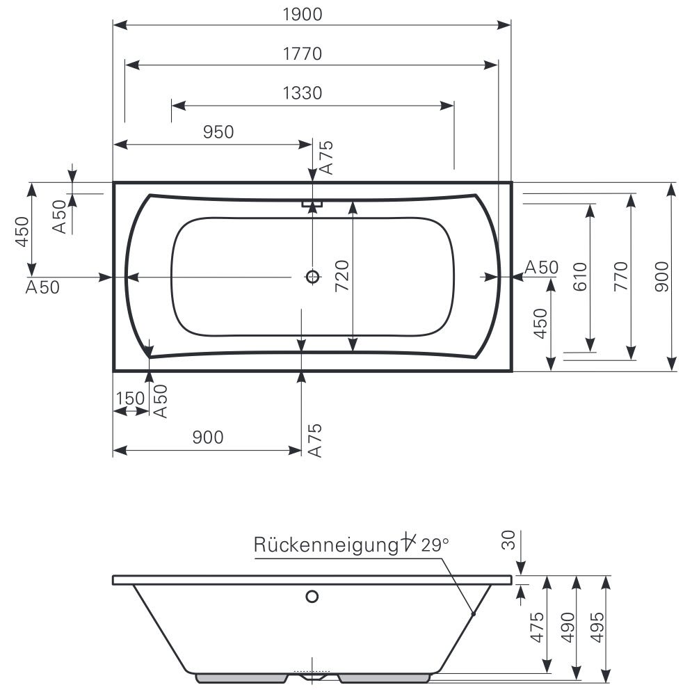 Mauersberger Badewanne Jucunda 190 x 90 cm