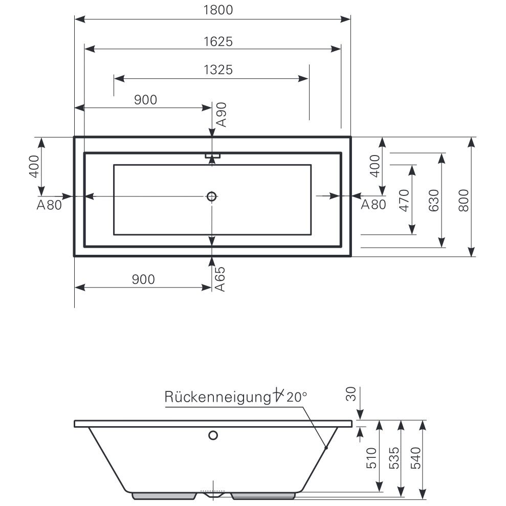 Mauersberger Badewanne Perfo 180 x 80 cm