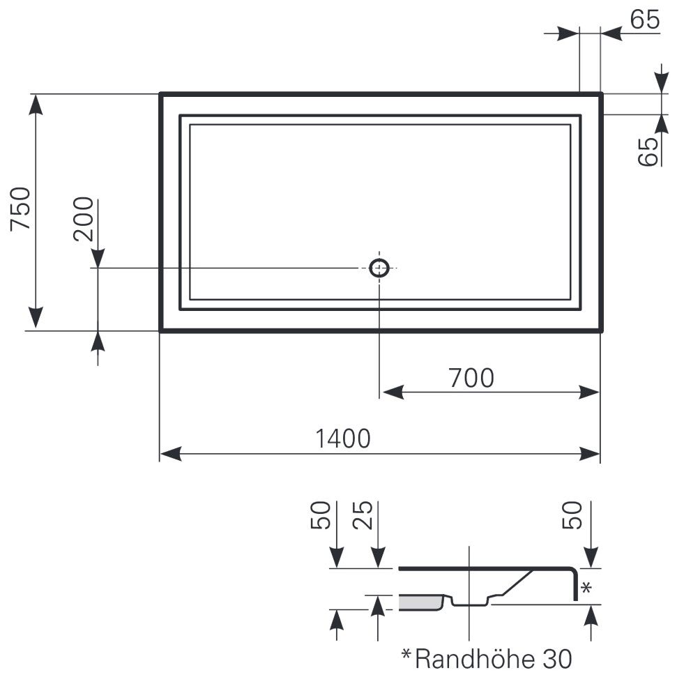 Mauersberger Duschwanne Lupina 140 x 75 superflach