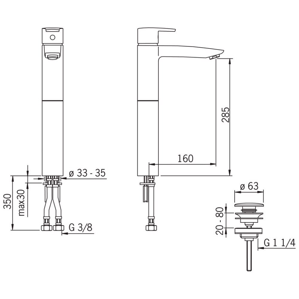 - Höhe bis Luftsprudler: 28,5 cm