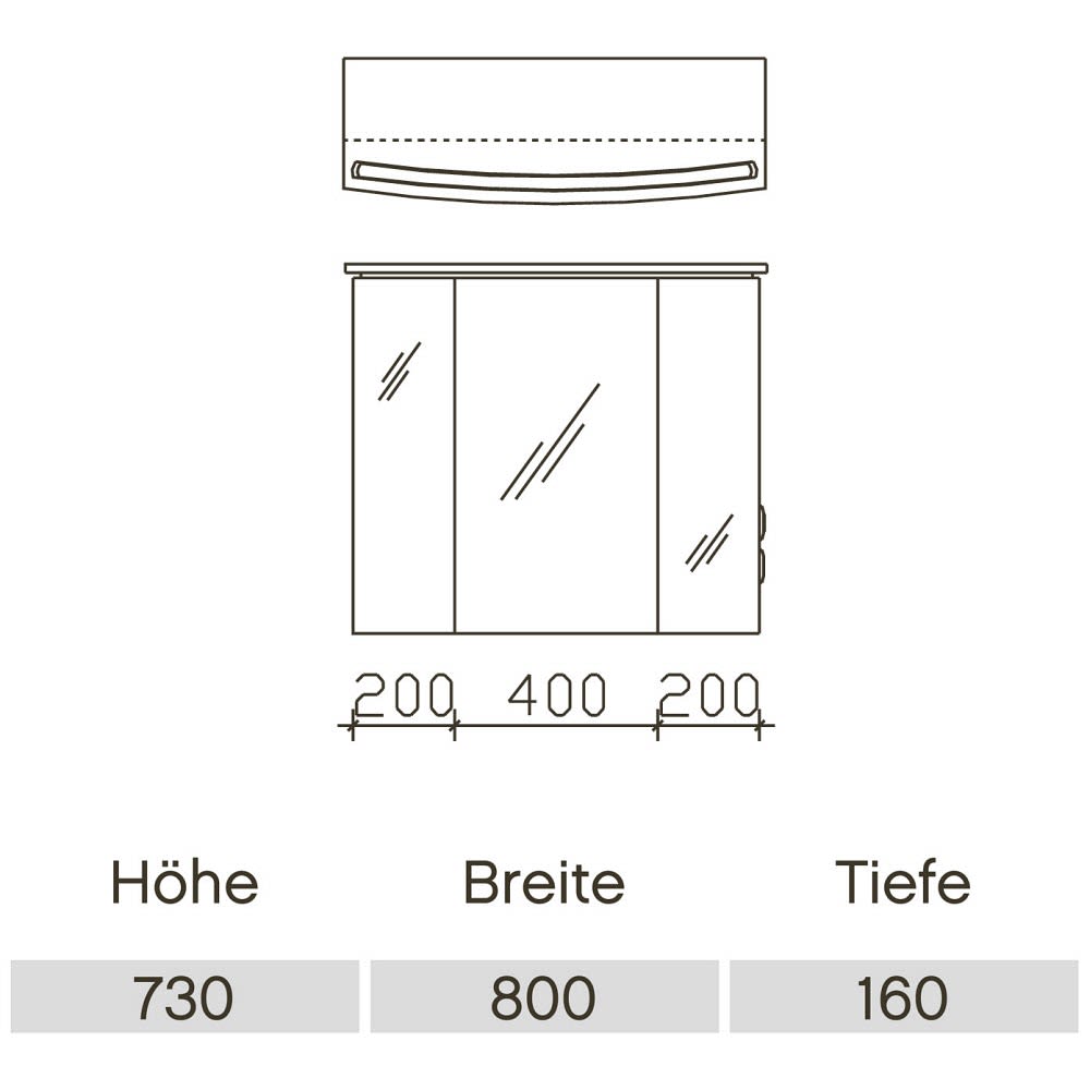 Pelipal Contea Spiegelschrank 80 x 16 x 73 cm mit LED Beleuchtung im Kranz, Modul UN