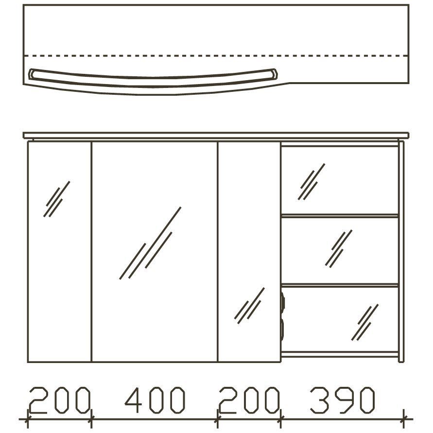 - 1 offenes Fach rechts mit verspiegelter Rückwand