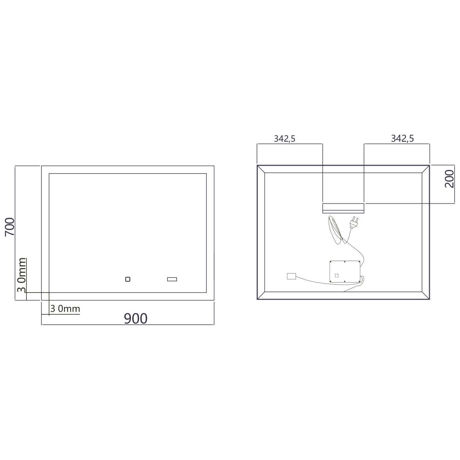 B: 90 T: 3 H: 70 cm