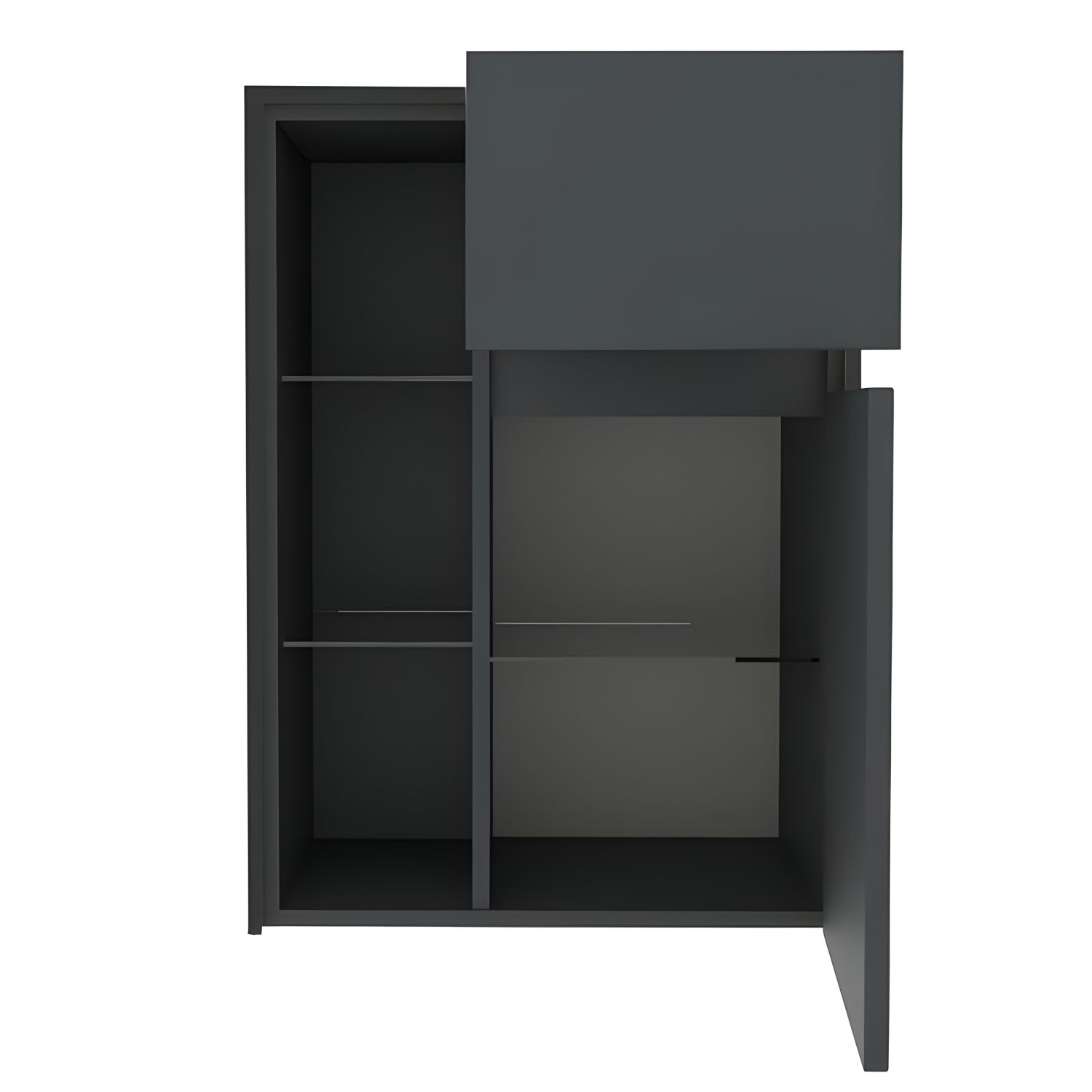 - 1 offenes Regal mit 2 Glaseinlegeböden