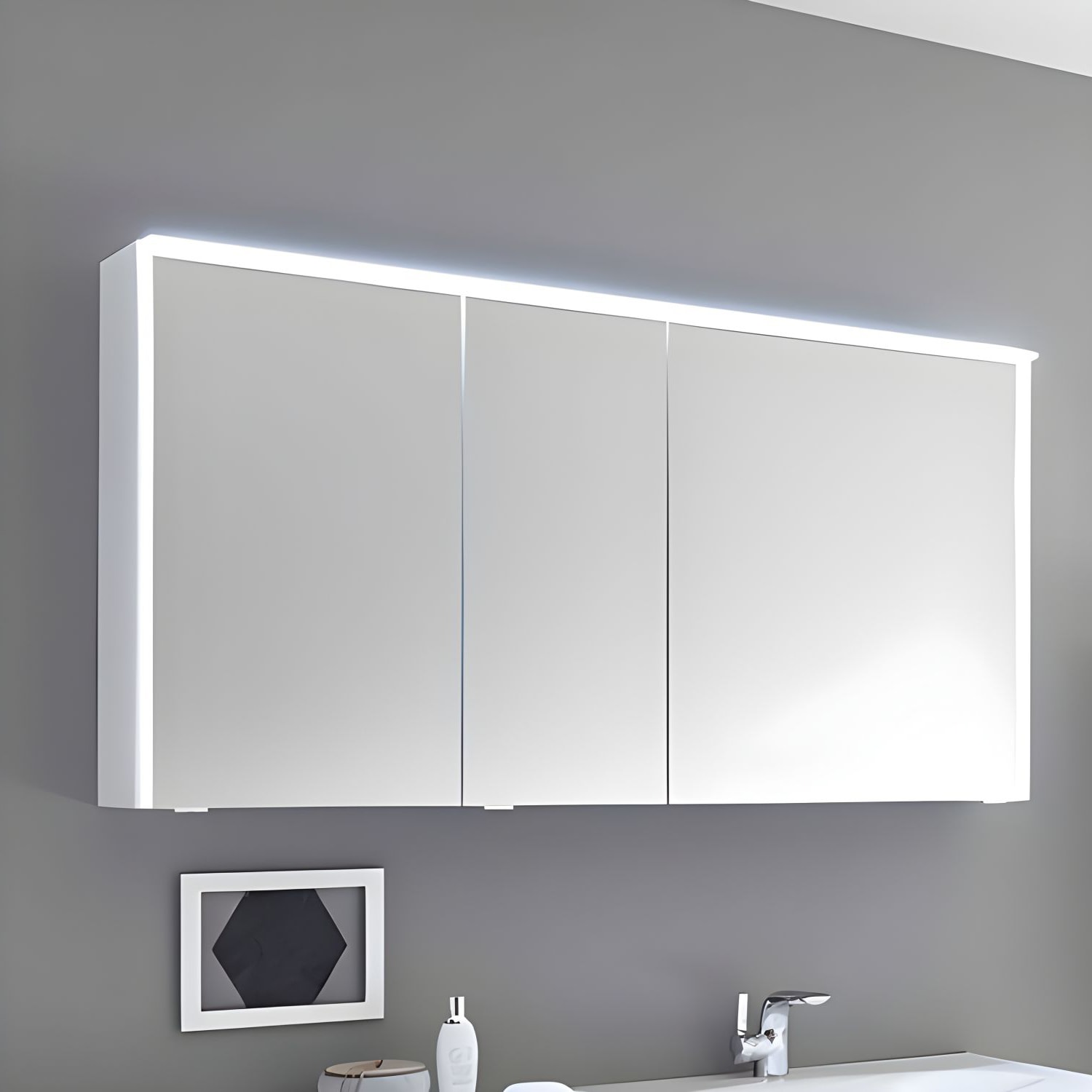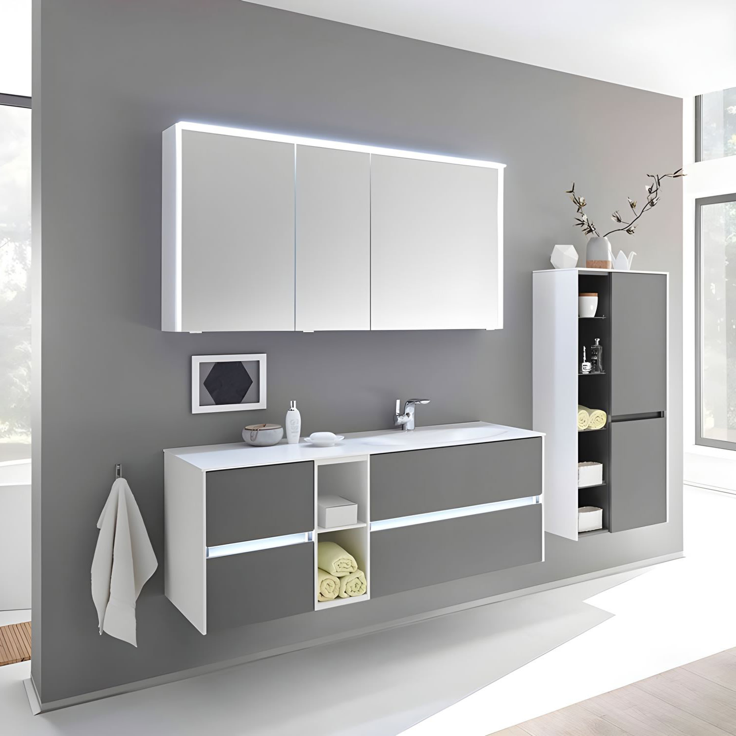 Pelipal Serie 6010 Spiegelschrank 134 x 17,6 x 70,9 cm mit LED-Lichtkranz, LED-Profil, Waschplatzbeleuchtung, große Tür links