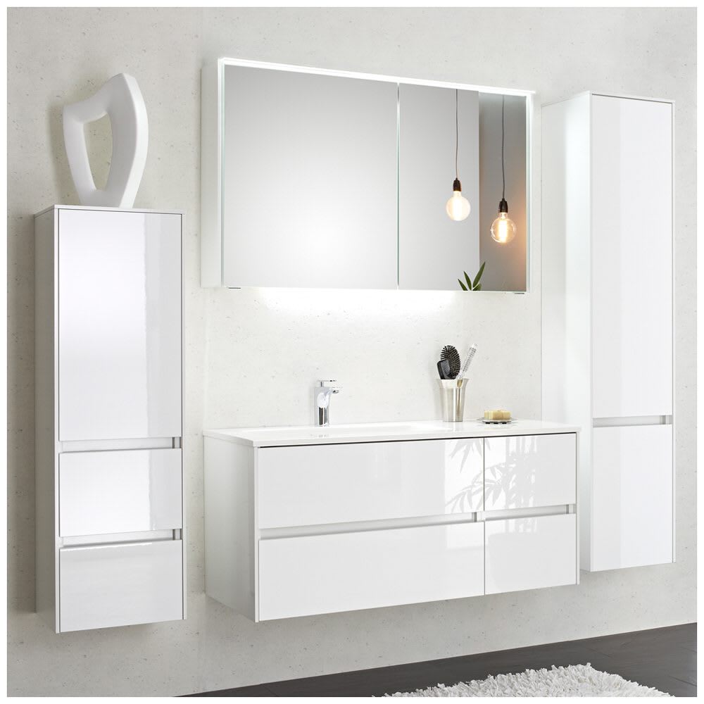 Pelipal Serie 6010 Spiegelschrank 114 x 17,6 x 70,9 cm mit LED-Lichtkranz, große Tür links
