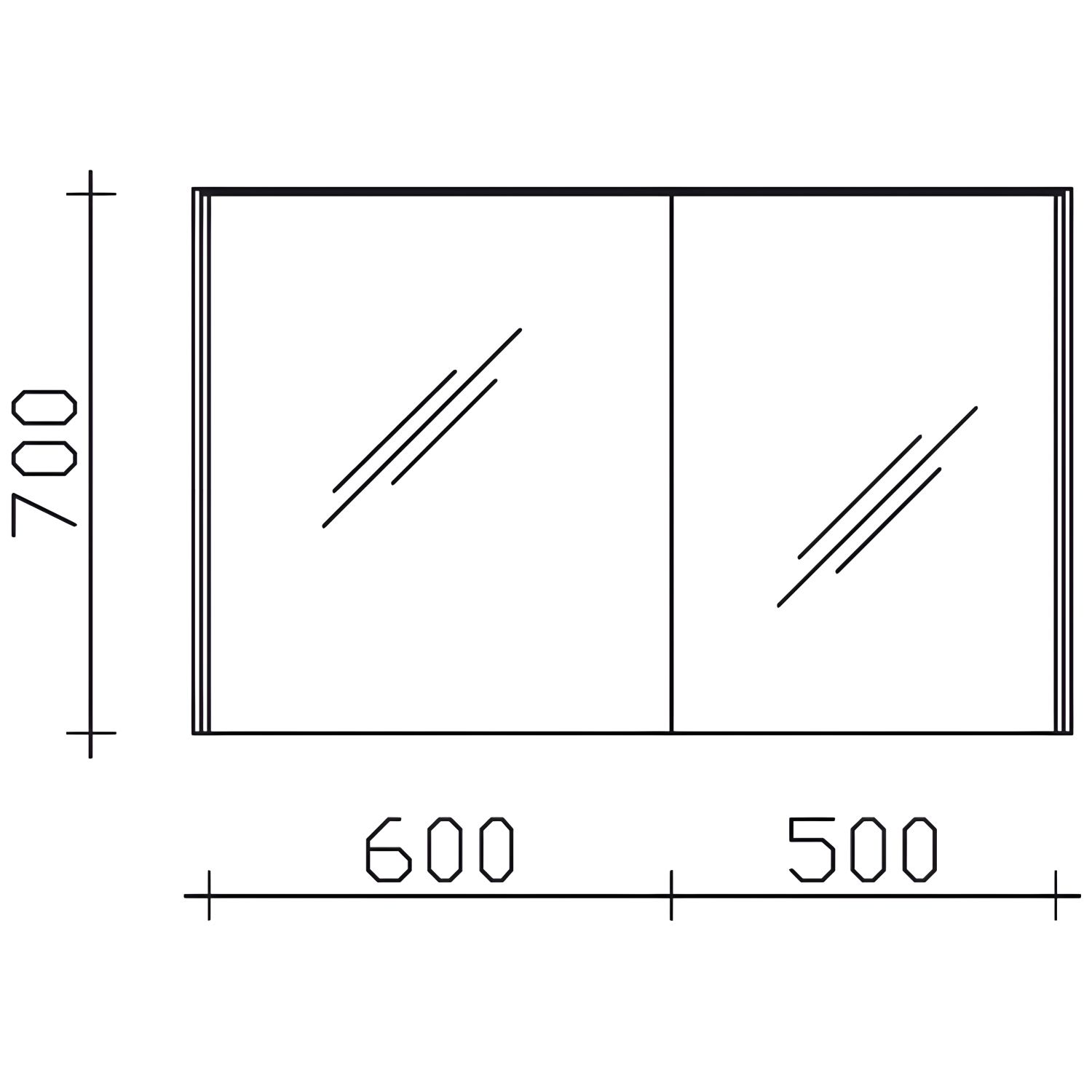 Pelipal Serie 6010 Spiegelschrank 114 x 17,6 x 70,9 cm mit LED-Lichtkranz, große Tür rechts
