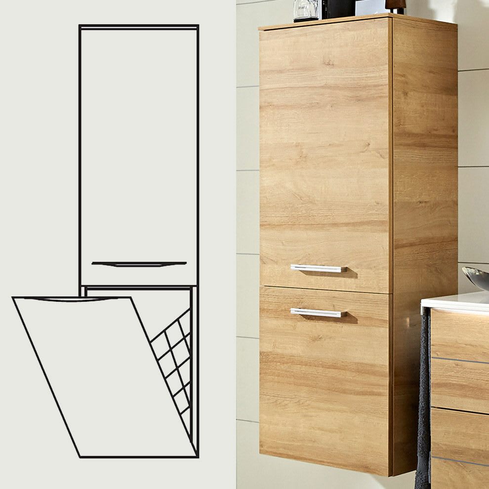 Pelipal Serie 6025 Midischrank 45 x 33 x 121 cm, 1 Drehtür, 1 Wäschekippe, Griff S, Anschlag links