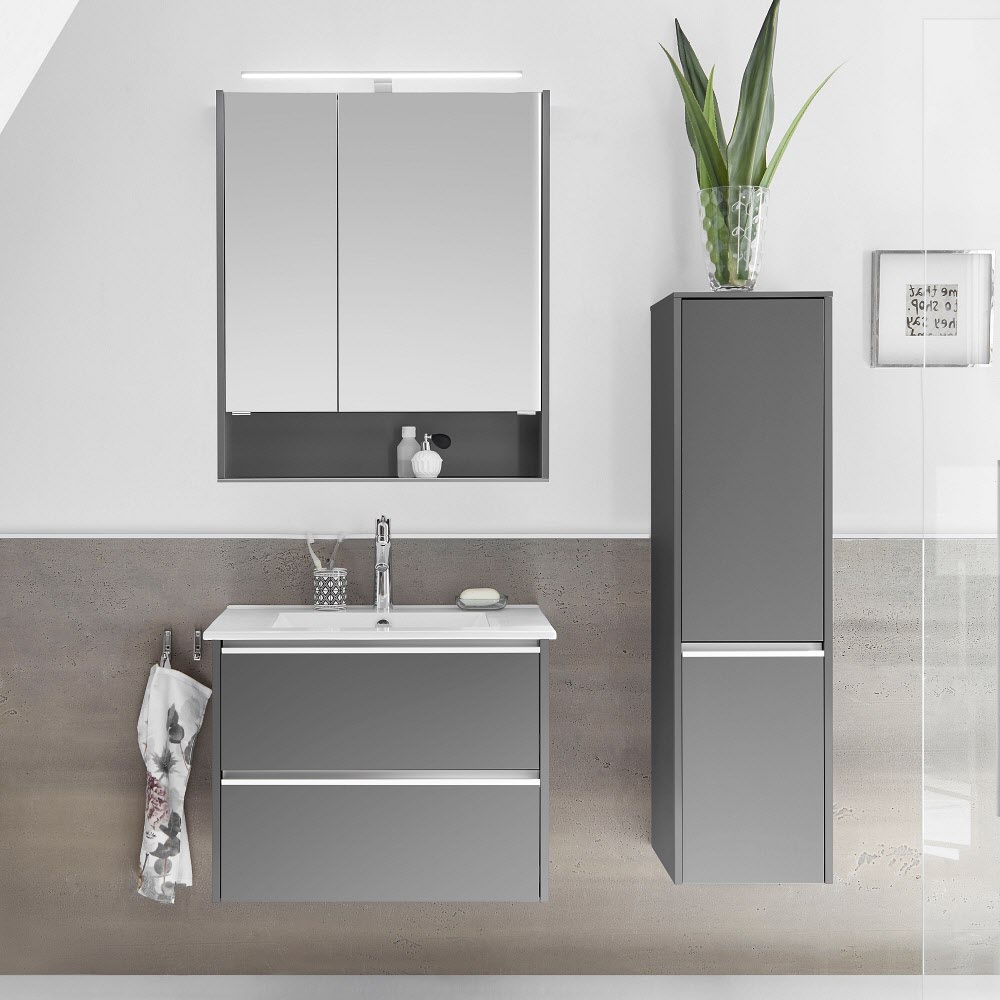 Pelipal Serie 6040 Spiegelschrank 73,2 cm mit LED Aufsatzleuchte 60 cm, große Tür rechts, offenes Fach