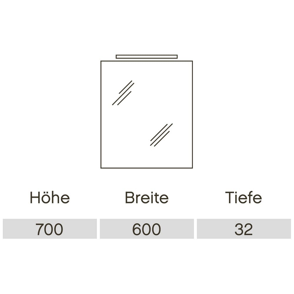 Pelipal Serie 6110 Badspiegel mit LED-Aufsatzleuchte in 60 cm Breite und elegantem Weiß glänzend