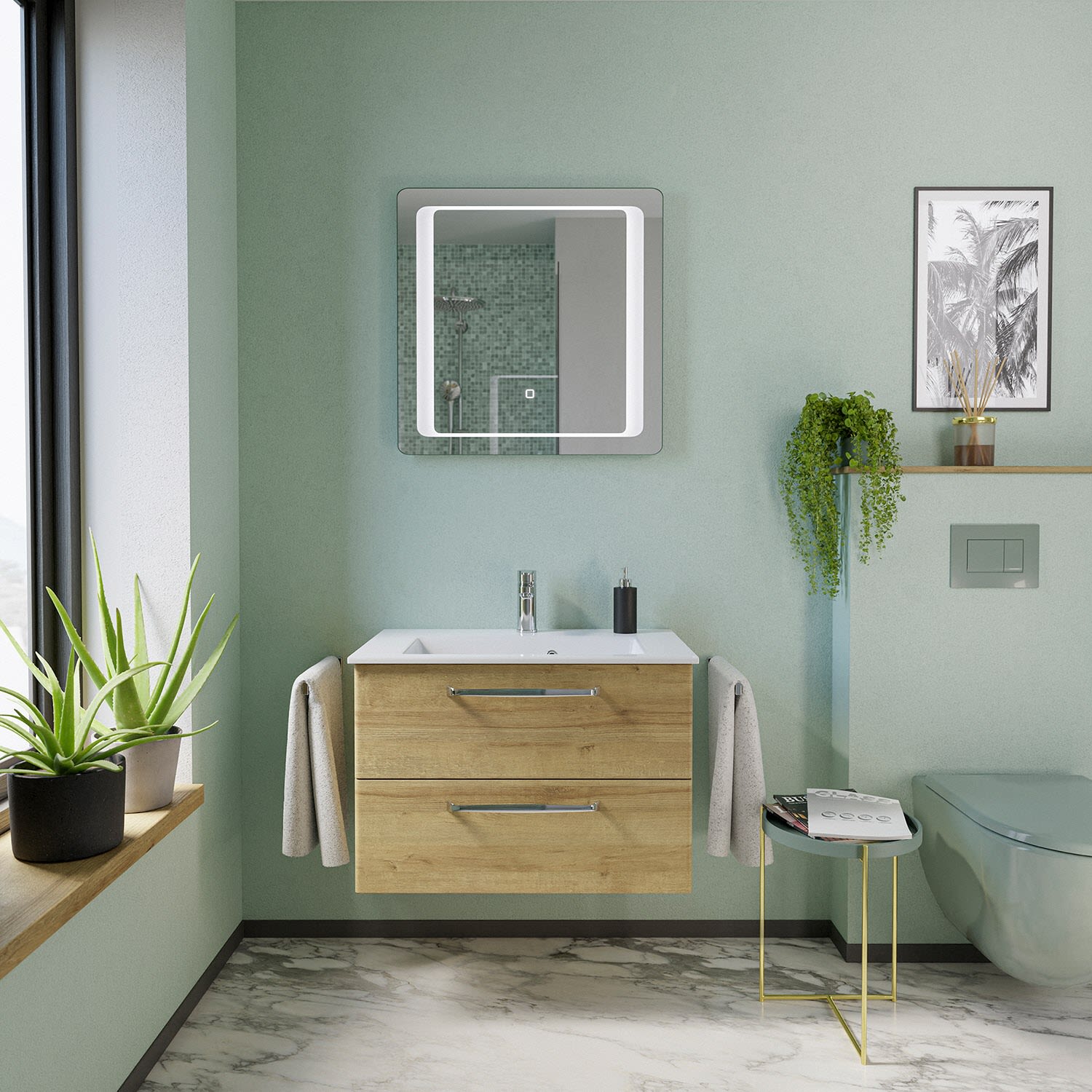 - Waschtisch, Waschtischunterschrank und Spiegel mit LED Lichtleiste umlaufend