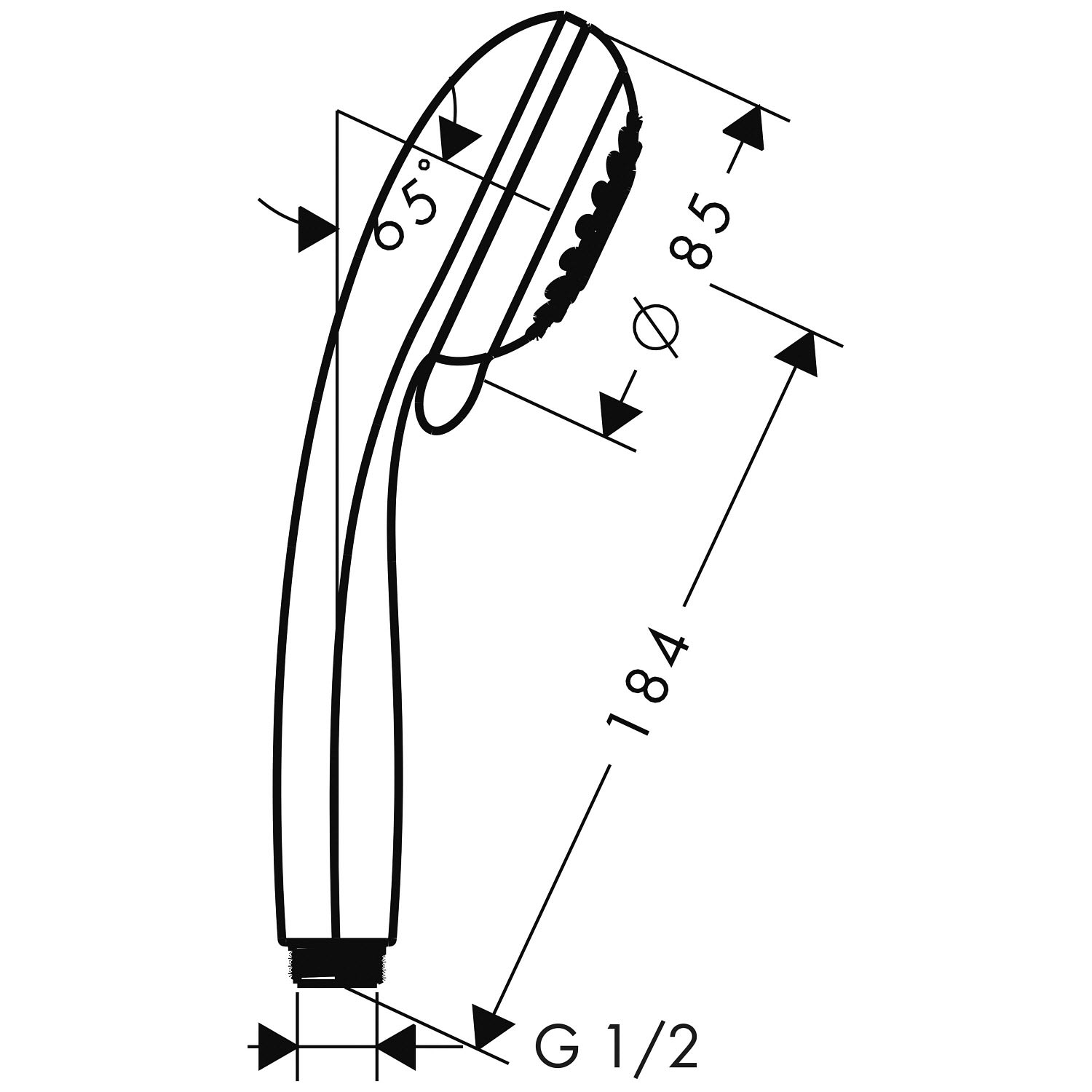 Durch den gebogenen Griff sowie den Gewichtsausgleich zwischen Kopf und Griff ist die Handbrause sehr gut geeignet bei verringerter motorischer Funktionsfähigkeit der Hände.