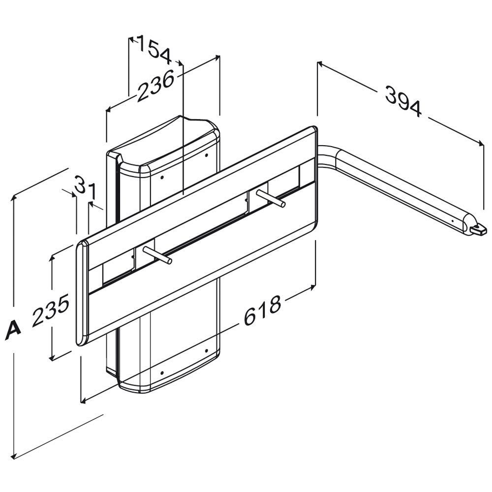 Pressalit PLUS Waschtisch-Lifter mit Betätigungshebel, manuell höhenverstellbar mit Gasdruckzylinder