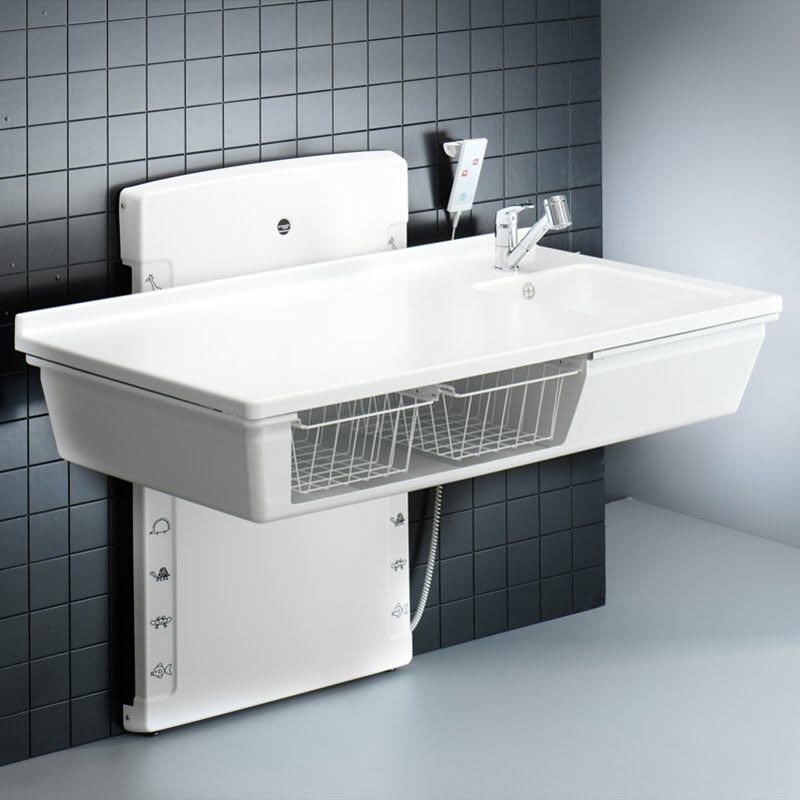 Pressalit Wickeltisch wandhängend 80 x 140 cm bodennah höhenverstellbar, mit sanitären Artikeln