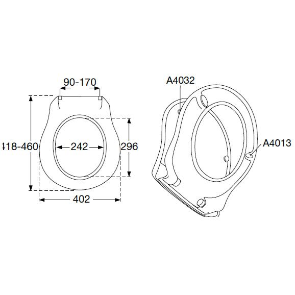 Pressalit WC-Sitz Raja 410 mit Absenkautomatik inkl. BL5 Universalscharnier für Lift-off