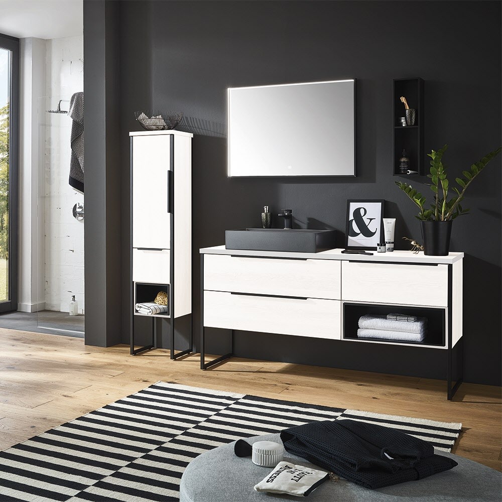 Puris Aspekt Waschtischunterschrank 60 cm mit 1 Einschubregal in schwarz, Griff 339
